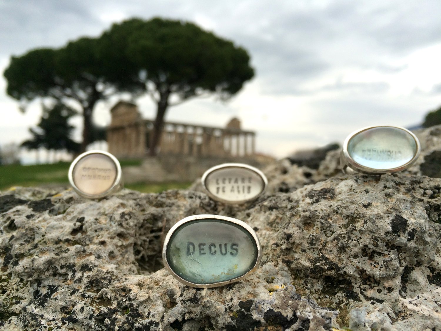 "Love conquers..." silver ring with rose quartz · OMNIA VINCIT AMOR ·