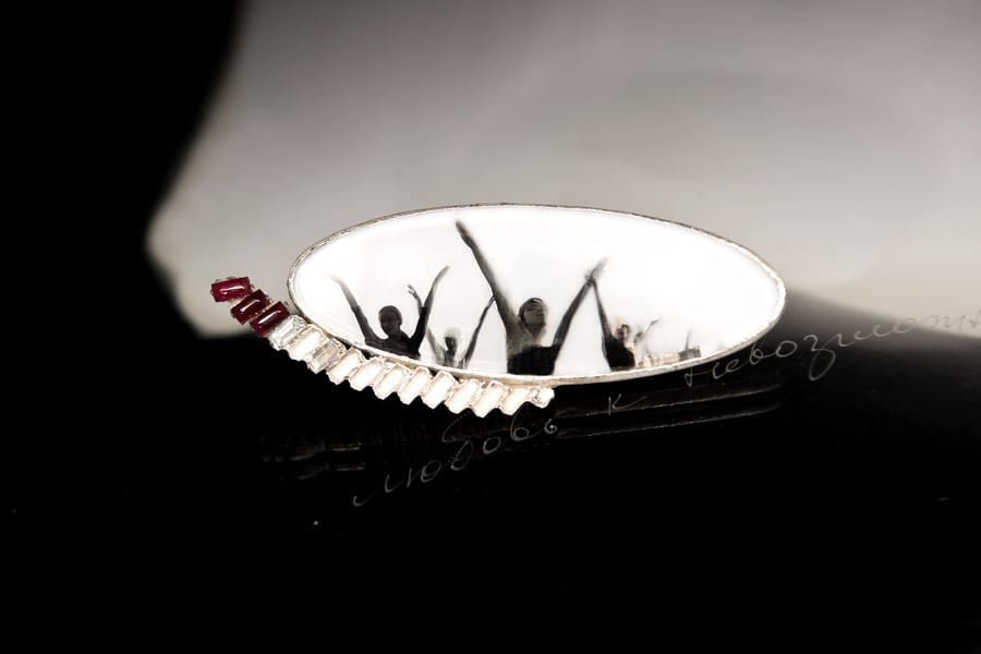sterling silver brooch with topaz, garnets and ballet photography under glass