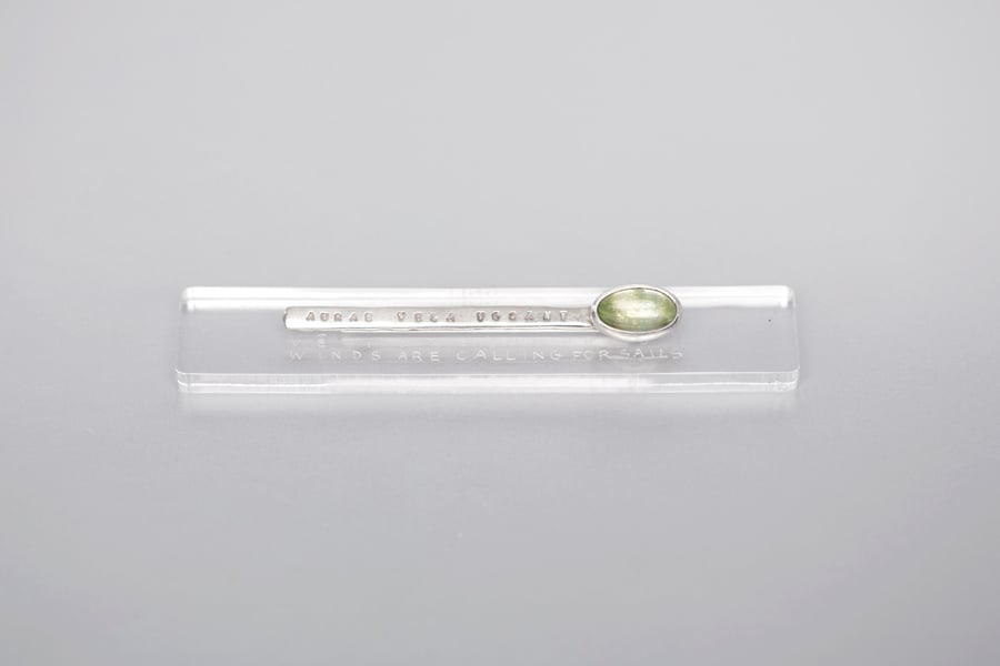 "Winds are calling for sails" silver brooch with aquamarine · AURAE VELA VOCANT ·