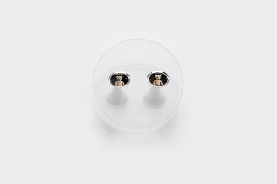 "You and me" teddy-bear sterling silver earrings with photo and rock crystal · EGO TU ·