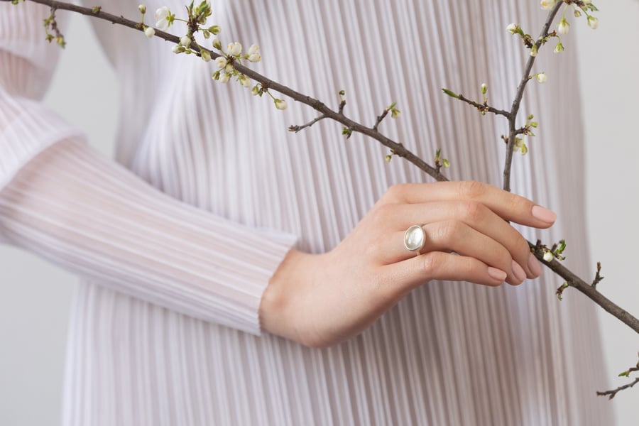 "Cherry blossom clouds" silver ring with rose quartz · 花の雲 ·