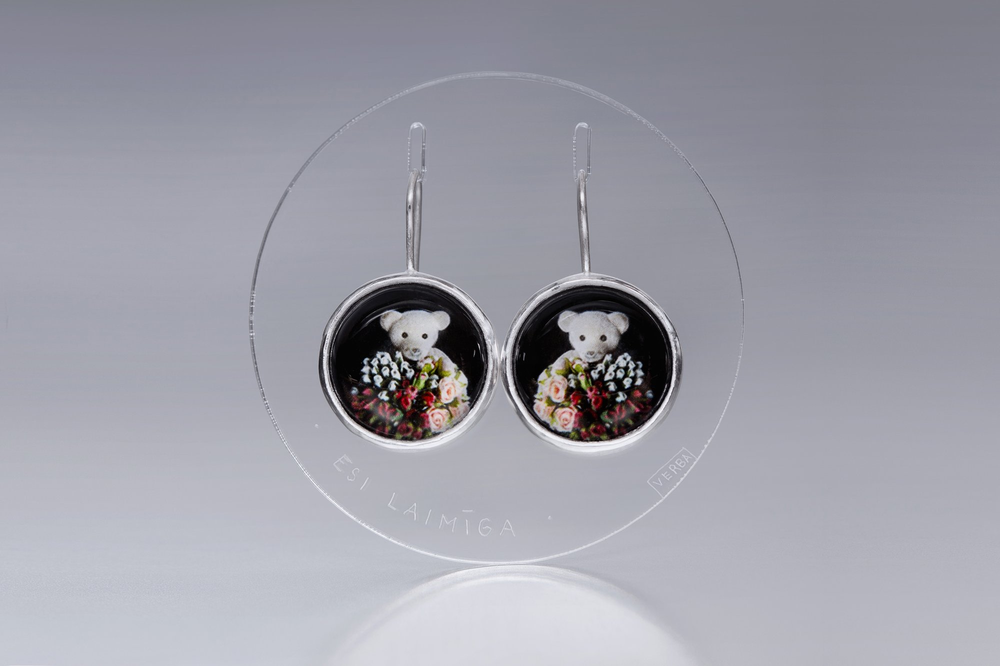 "Be happy" teddy-bears silver earrings with photos, rock crystal · SIS FELIX ·