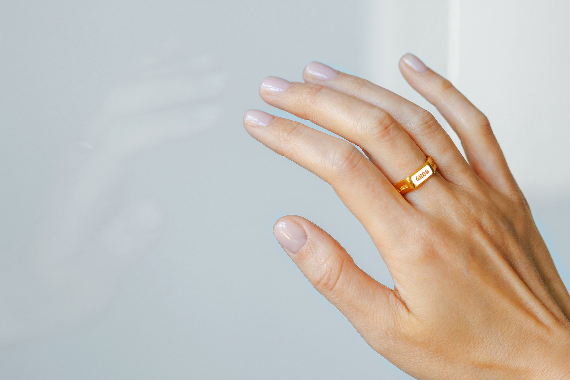 gold plated silver hexagon ring with inscription in Latin