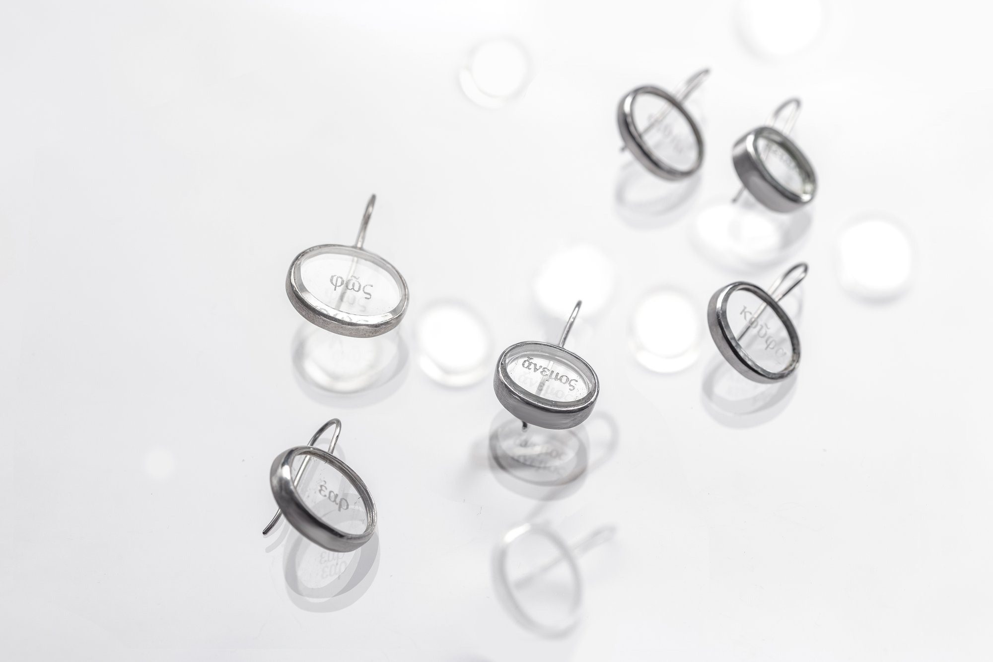 Sterling silver earrings with topaz and inscription in Ancient Greek on the stone.