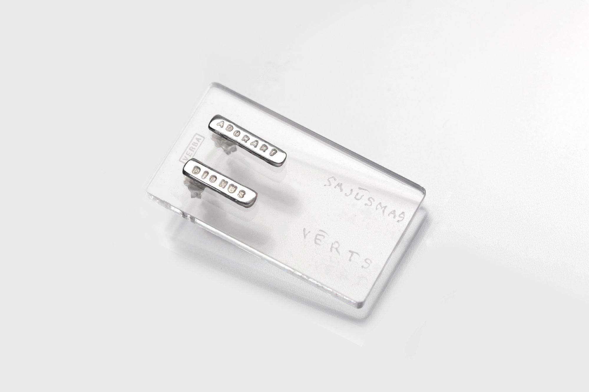 Middle silver earrings with inscription in Latin