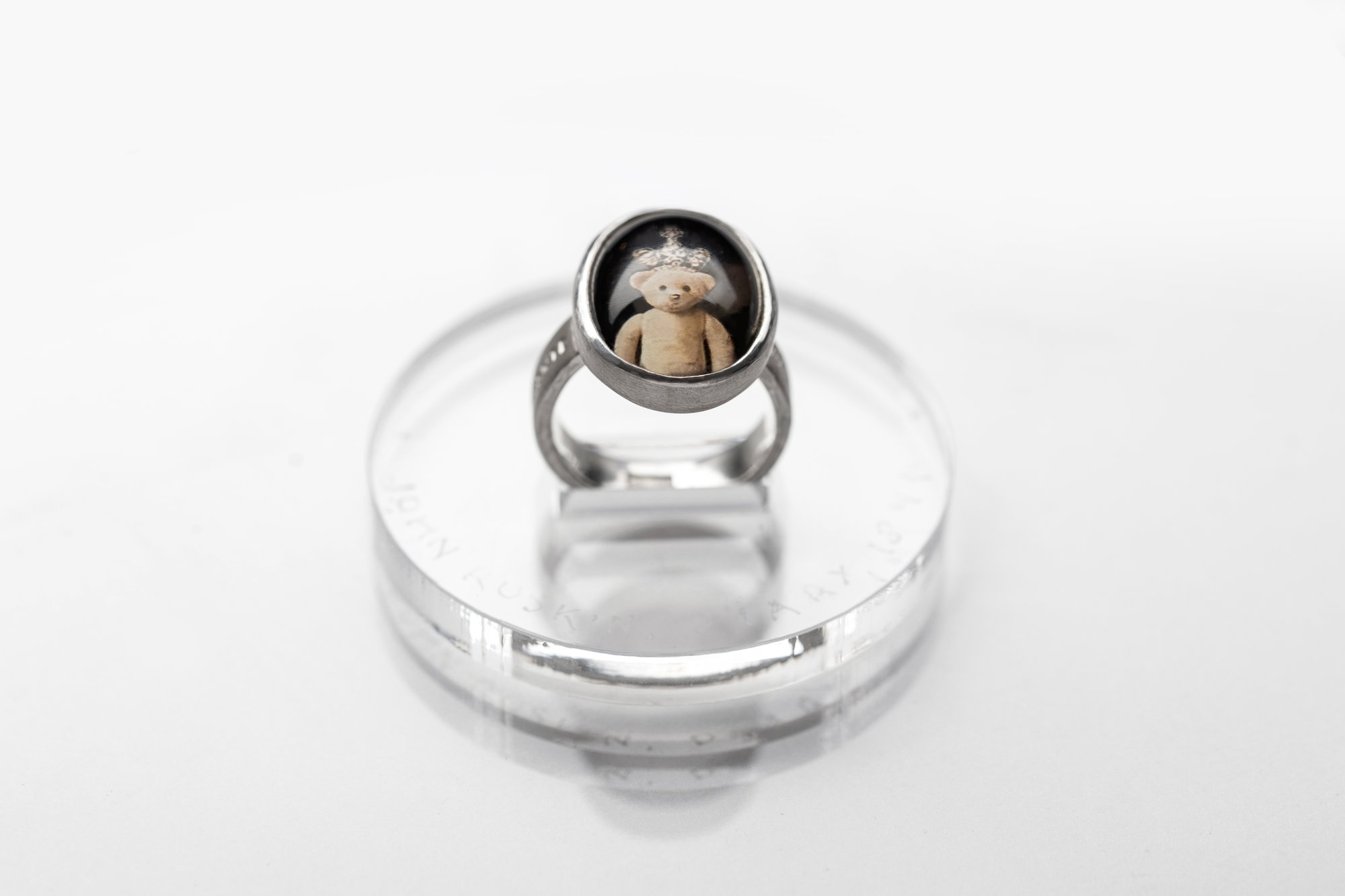 "Is the most.." teddy-bear’s silver ring with photo and rock crystal · POTENTISSIMUM.. ·